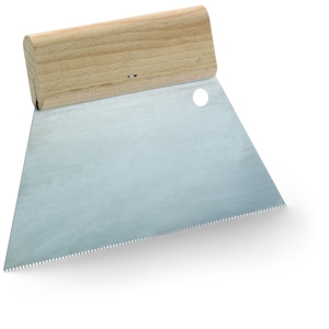 Zahnspachtel aus einem hochwertigen Stahl zum Auftragen von Klebstoffen, rostfrei.